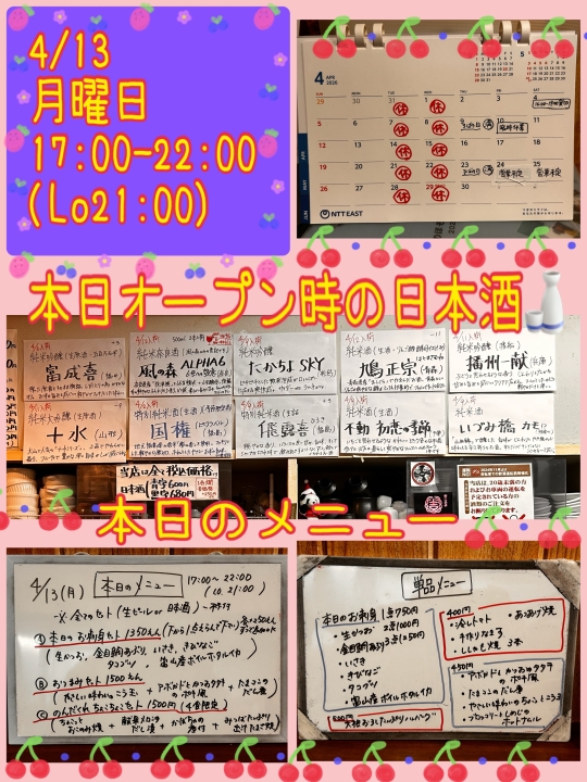 では 本日は17:00-22:00営業とさせていただきます。